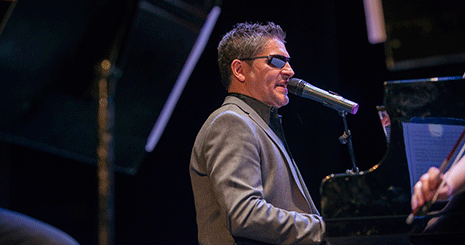 El cantante, pianista y compositor ciego navarro Serafín Zubiri conquistó al público con su gran voz y una presencia que llenó el escenario; interpretó dos temas al piano, ‘Para qué llorar’ y ‘Sigo aquí’, acompañado por Busker String Quartet.
