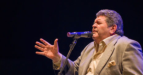 El humorista pacense Mariano Mariano, además de entregar el Premio Grada al Ocio, sorprendió al público con su voz, interprentando ‘Entre amigos’, un tema que dedicó al recientemente fallecido músico, también pacense, Manolo Tena.