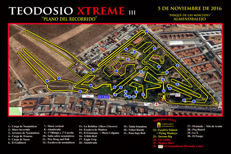 La prueba tiene una distancia de seis kilómetros, en los que se hallan distribuidos los 25 obstáculos que deberán sortear los participantes.