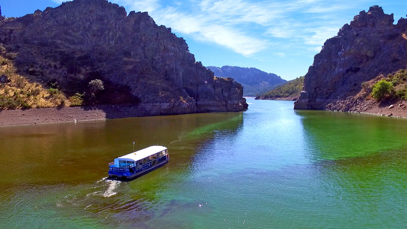 El Barco del Tajo Alcántara es una moderna embarcación con una capacidad de 55 plazas, que dispone de cómodos asientos, baño y amplios ventanales desde donde poder observar el recorrido. Se trata de un aula de naturaleza flotante, desde la que tener un acercamiento a la naturaleza y paisaje extremeño desde otro punto de vista.