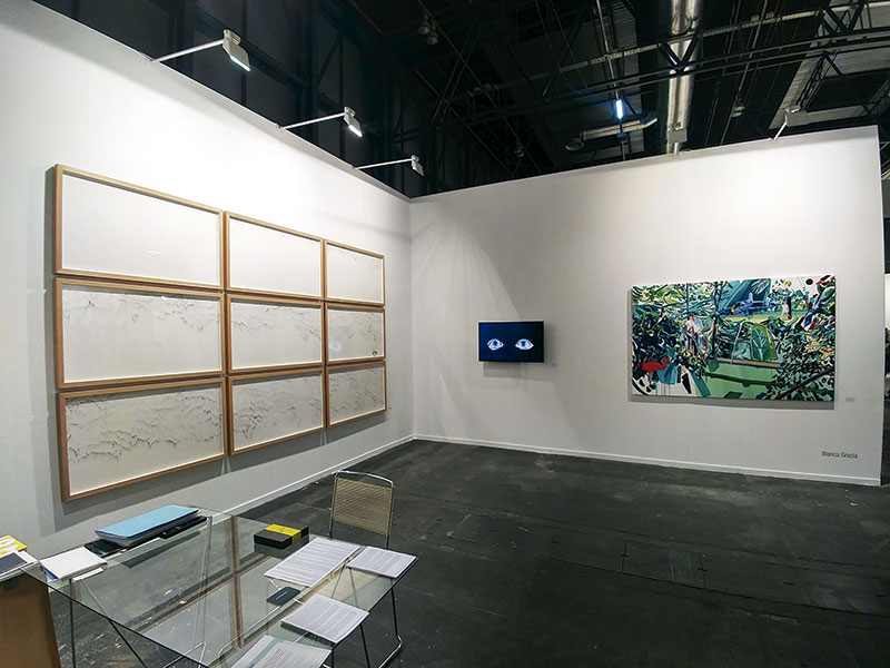 La galería pacense Ángeles Baños volvió a ARCO con stand propio y una interesante propuesta intergeneracional, que surge de la transdisciplinariedad patente en las obras de Blanca Gracia, Eder Santos y Juan Carlos Bracho.
