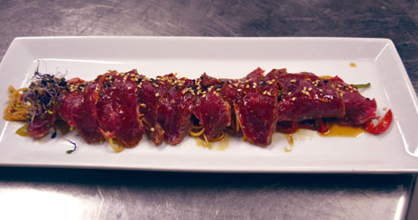 – Tataki de presa macerada con wok de fideos asiáticos