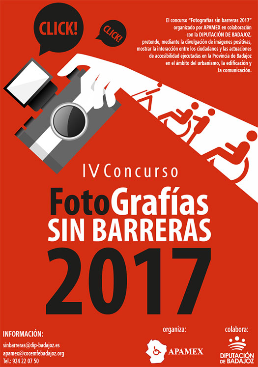 El IV Concurso de fotografía ‘Sin barreras 2017’, convocado en colaboración con la Diputación de Badajoz, pretende, mediante la divulgación de imágenes positivas, mostrar la interacción entre los ciudadanos y las actuaciones de accesibilidad ejecutadas en la provincia de Badajoz en el ámbito del urbanismo, edificación y la comunicación.