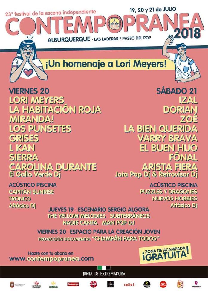El XXIII Festival Contempopránea de Alburquerque, que se celebrará del 19 al 21 de julio, tendrá a los granadinos Lori Meyers como protagonistas y homenajeados, al cumplirse los 20 años sobre los escenarios de este grupo, crecido al abrigo de Los Planetas y que se ha convertido en uno de los referentes de la escena indie española.