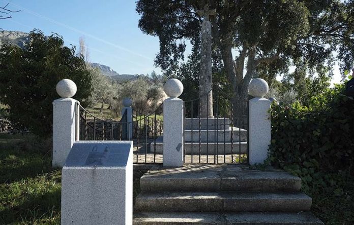 Cruz que se alza en el atrio de la iglesia parroquial de San Juan Bautista, declarado Monumento Histórico-Artístico Nacional en 1977, sobre tres gradas cuadradas reutilizadas, donde podemos observar varias cazoletas.