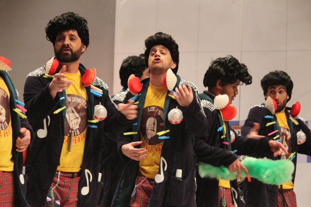Comenzaba la cuarta preliminar con la actuación de Los Informales. Unos informales que vienen solos porque han eligido para su debut un solterón que vive solo en su piso. En esta murga hay varios miembros de Serendipity y la calidad vocal es bastante buena, suenan muy bien. A lo largo de su actuación conocimos todos los problemas que tenía este solterón en su día a día y aunque no entusiasmaron al público si que tuvieron buenos golpes aplaudidos por el respetable. Lo tienen claro, “mejor solo, que mal acompañados”, las labores domésticas las llevan regular pero han encontrado la mejor forma de escuchar música por sus auriculares… con conchas a los lados. Buena propuesta para el debut de Los Informales.