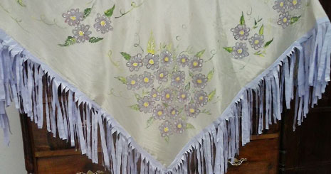 Una vez más, Quini Nieto continuando con su tarea de reciclado, ha confeccionado más de 30 mantones, con un estilo único y diferente cada uno. Éstos, pintados a mano, tienen los flecos hechos con bolsas de plástico en colaboración con ‘los mayores del Centro de Día’ de la localidad para ayudar a pintar la torre. “La ermita del Santo Cristo necesita pintarse. Hay un fondo pero no es suficiente para realizar este proyecto. Por ello, estoy organizando este desfile de mantones de manila, hechos de forma manual por mí y utilizando material reciclado”, dijo la artesana. “Necesito la ayuda de los jóvenes para el desfile, ya que sin ellos no se puede llevar a cabo el desfile. Con un pequeño esfuerzo podemos conseguirlo” concluye Quini.