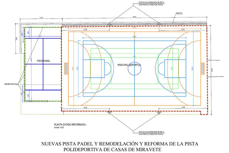 A esto se añadirá la construcción de una pista de pádel, con cerramiento e iluminación, además de la creación de un muro perimetral de contención de tierras en el lateral sureste de la pista.