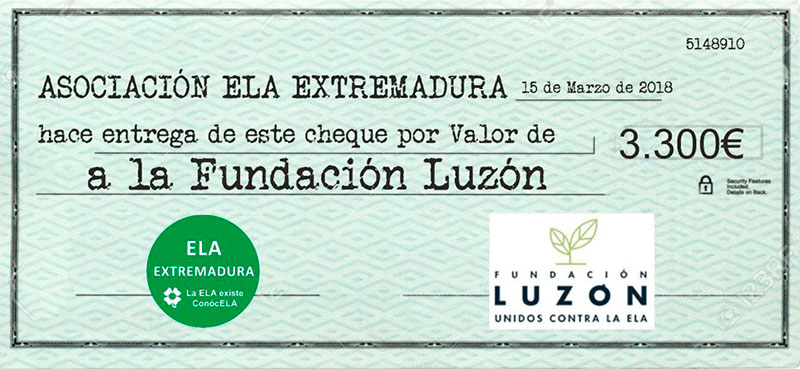 ELA Extremadura dona 3.300 euros a la Fundación Luzón para avanzar en la investigación de la ELA