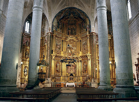 Visible a kilómetros, ya impresiona desde la distancia. Los aires, algo sobrios y herrerianos, de su exterior contrastan con un interior donde sobresale, sin lugar a duda, el espectacular retablo de su altar mayor, atribuido a la escuela del célebre escultor barroco Gregorio Fernández.