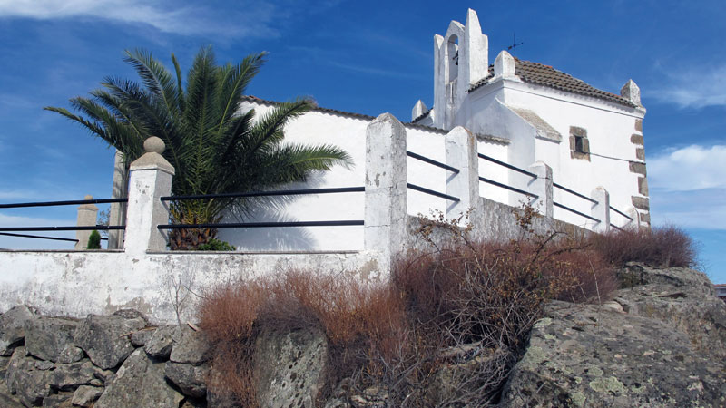 Pequeñas ventanas rectangulares laterales recercadas de cantería permiten la entrada de luz al interior. Entre la nave y la cabecera se levanta una airosa espadaña. Resaltan las paredes encaladas siguiendo la costumbre de las casas de la población o mampostería, que son su principal seña de identidad.