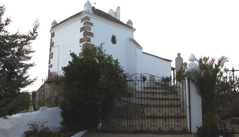 Se trata de un edificio de mampostería encalada y cantería, situado sobre un cerro granítico al que se accede por una rampa, destacando desde abajo la esbeltez de la ermita y los contrafuertes que contrarrestan el empuje de la cúpula semiesférica, con pináculos en los extremos, que cubre el presbiterio.