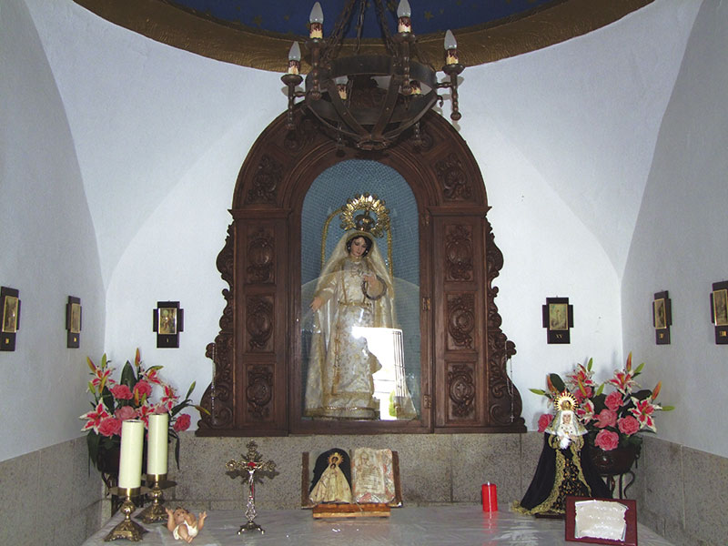 En su interior, en el altar mayor, se conserva una imagen de una Virgen Dolorosa o de la Soledad (la Patrona), de vestir, del siglo XIX, que se venera en un retablo que tiene tallados los símbolos de la Pasión.