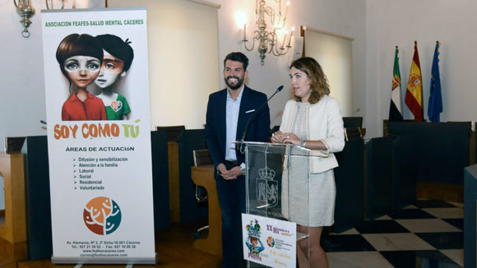 Feafes Cáceres ha querido realizar un acto previo al Día Mundial de la Salud Mental, que se celebra hoy miércoles 10 de octubre, y lo ha hecho en el Salón de Plenos de la Diputación de Cáceres, reconociendo así, tal como ha indicado la presidenta de la asociación, María del Mar Moreno, “el esfuerzo y el compromiso que sabemos que tiene la Diputación y la presidenta de la Diputación para la integración y la inclusión con programas muy concretos”.