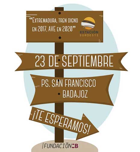 Bajo el lema ‘Extremadura, tren digno en 2017, AVE en 2020’ llega al paseo de San Francisco de Badajoz ‘Estación Suroeste’, un proyecto multicanal liderado por la Fundación CB a través del magazine La Galera, que refleja con nitidez el clamor popular para que la región cuente con una conexión ferroviaria digna con el resto de España y también con Portugal, ejemplificado en personalidades tan conocidas como José Manuel Calderón, Conchi Bellorín, Diego Hidalgo Schnur o Francisco José Dacoba, entre otros muchos.