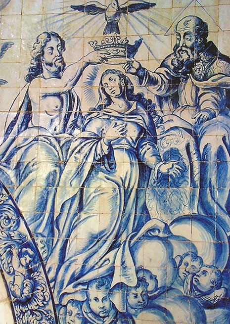 Dadas as condicionantes espaciais, os mistérios gozosos e gloriosos da Virgem, desenvolvem-se em altura através de dois registos colaterais onde figuram a Anunciação (onde, aliás, o pintor assina e data a obra), a Visitação, a Assunção, a Coroação de Maria, o Presépio, a Adoração dos Pastores, a Apresentação do menino no Templo, a Purificação de Nossa Senhora e a Imaculada Conceição.