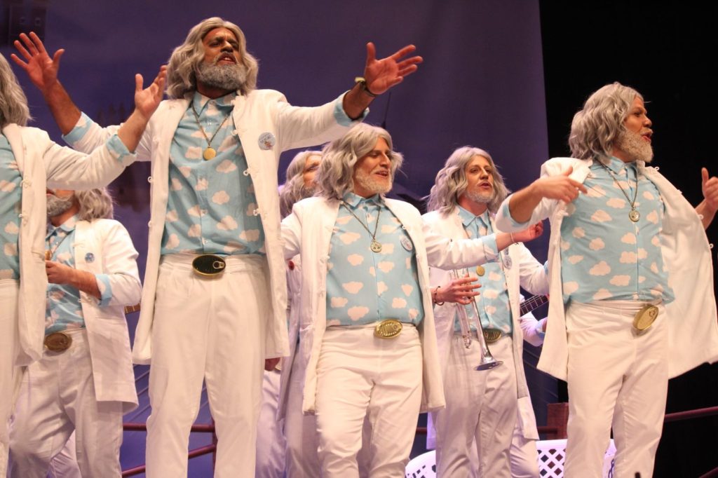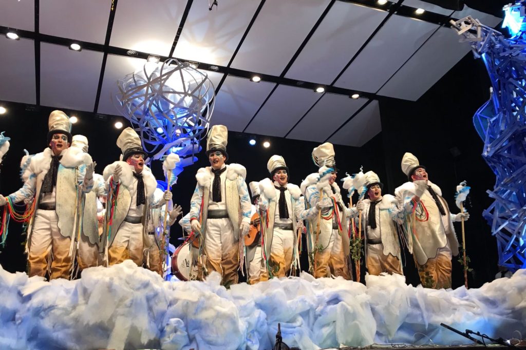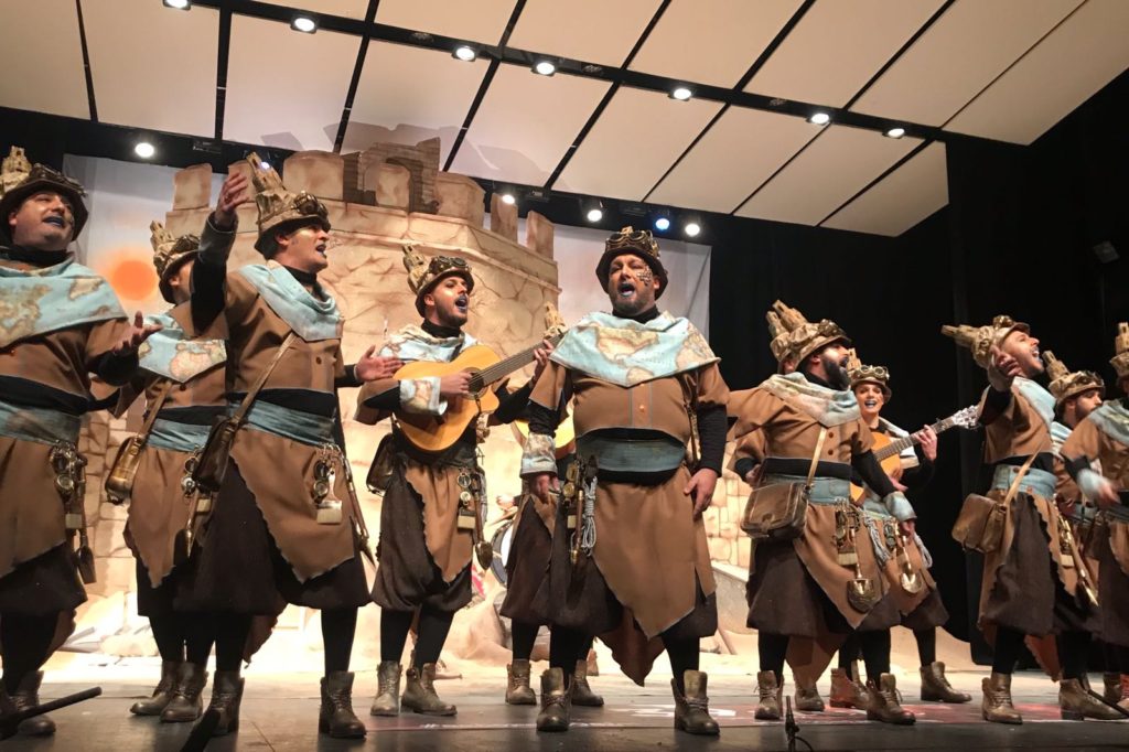 Otro de los platos fuertes y experimentados en finales. Dakipakasa este año llegaba con una propuesta preciosa y una puesta en escena que impresiona. Viven en una nube, entre el cielo y la tierra, pero con el paso de sus actuaciones podemos decir que han ascendido al séptimo cielo. Cantaron un precioso pasodoble en el que intercedían entre familiares fallecidos, digno de escuchar. En el primer cuplé hablaron de Christian Grey y en el segundo, con cameo de los Water Closet, de todos los amigos que tienen en el cielo. Gran paso de Dakipakasa por el Concurso de Murgas.