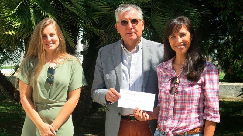 El evento estuvo promovido por Ibercaja y Fundación CB con el objetivo de recaudar fondos para los proyectos que desarrolla la Asociación de Zooterapia de Extremadura. En nombre de ambas entidades, el director general de Fundación CB, Emilio Jiménez, ha hecho entrega de su recaudación íntegra la presidenta de la asociación, María Dolores Apolo, que ha estado acompañada por la educadora Marta Madrigal.