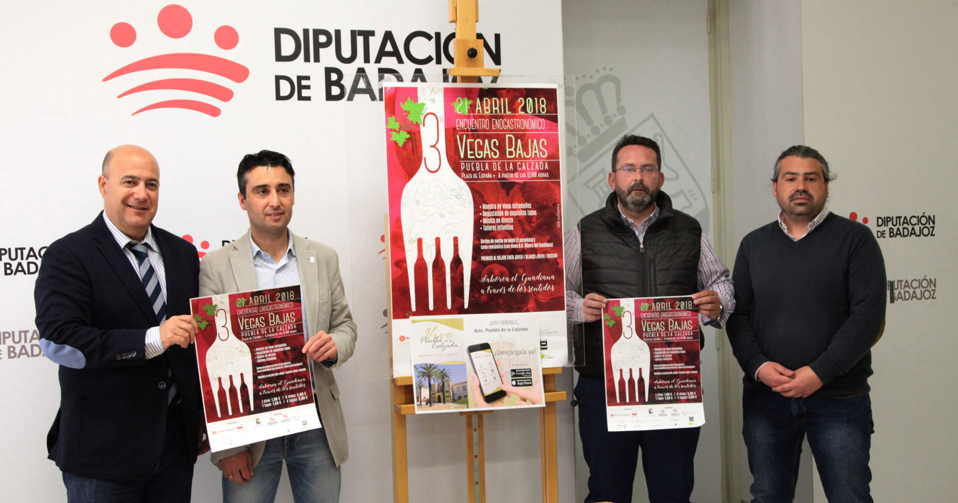 Puebla de la Calzada celebra el sábado 21 de abril la tercera edición del Encuentro Enogastronómico Vegas Bajas organizado por el Ayuntamiento de la localidad y las empresas Vinium y acomprarvinos.com, con la colaboración del Patronato Provincial de Turismo y Tauromaquia de la Diputación de Badajoz, que acudirá con su stand promocional, la Ruta del Vino Ribera del Guadiana y diez bodegas extremeñas.