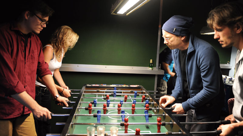 Los tanques, querido Luis, los inventaron los ingleses en la Primera Guerra Mundial. Y los alemanes utilizaron demasiadas bombas en el siglo XX. Personalmente solo conozco una bomba que causó algo bonito. Era una bomba de la Legión Cóndor, en 1937, durante la Guerra Civil, cuando los alemanes lucharon al lado de Franco y causaron mucho daño. Pero lo que pasó con esta bomba no lo sabe casi nadie en mi país, así que se lo conté a mis amigos de la foto en un bar de Colonia: un bombardeo de la Legión Cóndor provocó heridas en las piernas a un chaval de Finisterre, Alejandro Campos (1919-2007), que acabó en el hospital con 17 años; no podía jugar al fútbol en la clínica, pero sí al tenis de mesa. Y combinaba: fútbol, mesa, fútbol, mesa… futbolín. ¡Qué invento, Alejandro!