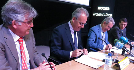 En este doble acto han participado el rector de la Universidad de Extremadura, Segundo Píriz; el presidente de la Fundación CB, Emilio Vázquez; el director del Gabinete de Información y Comunicación de la Universidad de Extremadura, Agustín Vivas; y el director general de la Fundación CB, Emilio Jiménez.