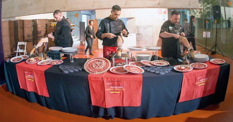 En el vino de honor que se ofreció a autoridades y premiados tras la gala se pudo disfrutar de la gran presentación del jamón ibérico llevada a cabo por el campeón de España de corte de jamón, el cacereño y jovencísimo David Lavado.