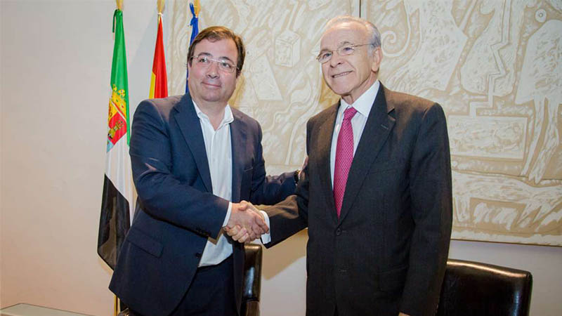 Los presidentes de la Junta de Extremadura, Guillermo Fernández Vara, y de la Fundación La Caixa, Isidro Fainé, han firmado en Mérida un acuerdo de colaboración en materia social, educativa y cultural, a través del cual La Caixa incrementará su inversión en acción social en la región hasta alcanzar los cinco millones de euros este año.