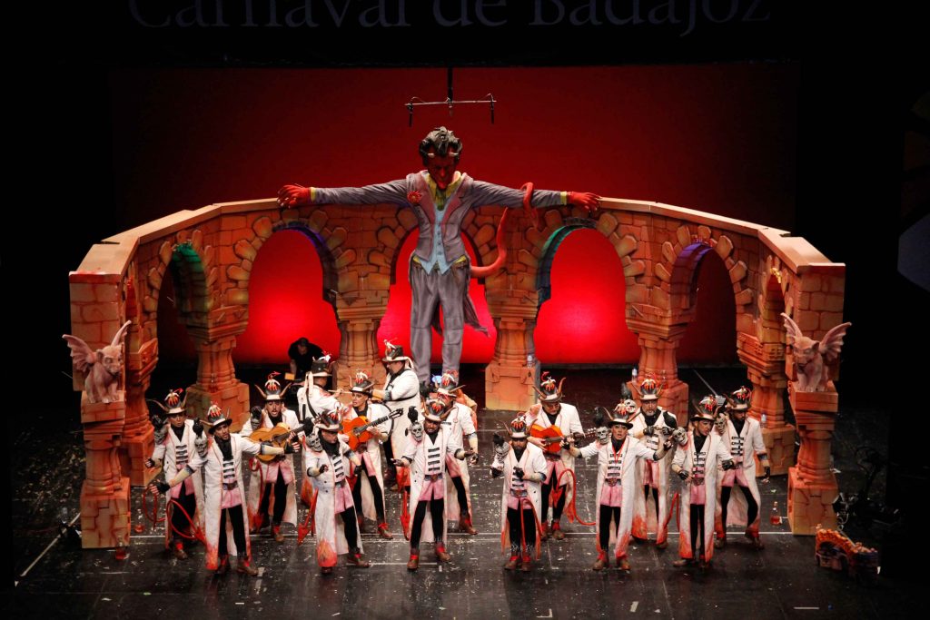 Tras el descanso era el turno de Marwan. Recién llegados desde el infierno cantaron su primer pasodoble a Carlos Ruperto, uno de los pioneros de este Carnaval y el segundo a a la afición de muchos badajocenses por el concurso de Cádiz. Los cuplés también fueron renovados, el primero a la tecnología en el deporte y, el segundo, a Fragoso y su altura. Sin duda su principal fortaleza son sus voces y la buena música de la que hacen gala. Fueron muy ovacionados y es que es un verdadero espectáculo escuchar a Marwan.