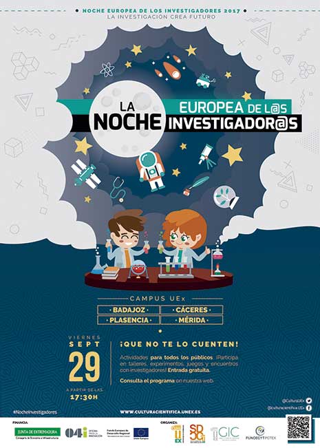 La Noche Europea de los Investigadores es una iniciativa del programa Horizonte 2020 de la Unión Europea. En Extremadura, está organizada por la Universidad y Fundecyt-Pctex, con la financiación de la Oficina para la innovación (O4i), la Consejería de Economía e Infraestructuras de la Junta de Extremadura y el ‘Fondo Europeo de Desarrollo Regional: Una manera de hacer Europa’. GABINETE DE INFORMACIÓN Y COMUNICACIÓN UEX