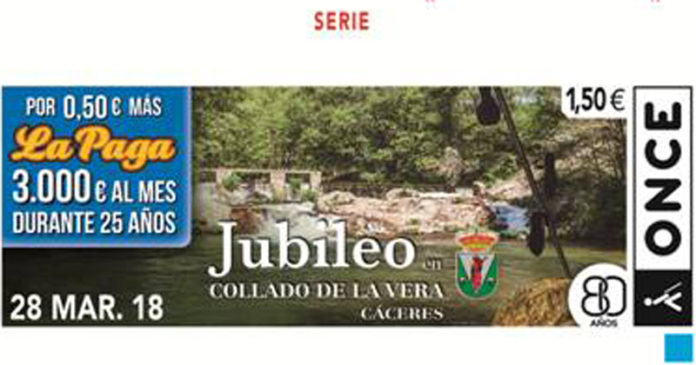 El cupón ha sido presentado por el delegado territorial de la ONCE en Extremadura, Fernando Iglesias, y la alcaldesa de Collado de la Vera, Montserrat Fernández. Esta localidad cacereña posee el privilegio del Jubileo desde el siglo XVI, gracias al cardenal Pedro de Carvajal. El Jubileo tiene lugar el Miércoles Santo de cada año.