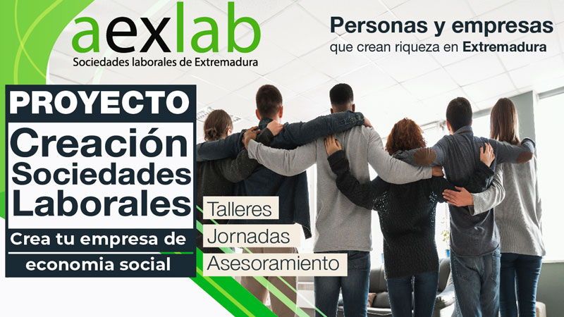 La Asociación extremeña de sociedades laborales y empresas participadas de Extremadura (Aexlab) está desarrollando el proyecto de difusión ‘Sociedades laborales: creación de empresas de economía social’, con el objetivo de difundir acciones de impulso al emprendimiento y el empleo en Extremadura.