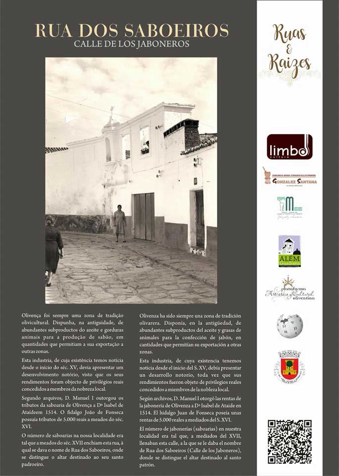 Con el comienzo del año arranca el programa de actividades de Limbo Cultura, esta vez con el proyecto Ruas & Raizes (Calles y Raíces), una iniciativa, que esta asociación cultural pone en marcha en colaboración con el Museo Etnográfico Extremeño González Santana y su recién creada Asociación de Amigos y Amigas (AAMEEGS), la Plataforma Artístico-Cultural Oliventina, la Asociación Além Guadiana el Ayuntamiento de Olivenza y Wikipedia, y con la que se propone dar a conocer parte del patrimonio inmaterial de Olivenza, complementando su oferta turística y cultural
