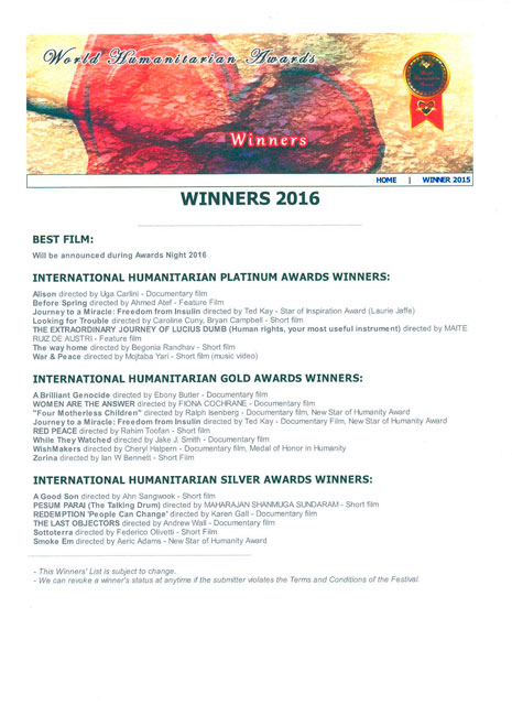 WORLD HUMANITARIAN AWARDS 2016