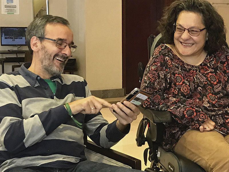 Marco, a la hora de realizar esta entrevista, ya ha perdido la capacidad de hablar. La tecnología, tantas veces herramienta de trabajo durante su vida laboral, suple ahora sus carencias comunicativas. La expresión corporal de Marco y la imaginación ponen calidez sobre la voz fría del dispositivo que reproduce sus palabras. Y así se obra el milagro de la comunicación. Con la ayuda también de su entorno familiar, que ha hecho piña con él en todo momento desde que llegaron aquellos primeros síntomas. Su hermana Inmaculada nos acompaña dando una hermosa lección de cercanía y mano tendida.