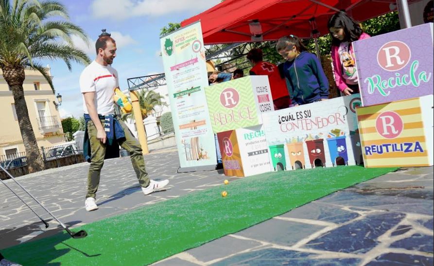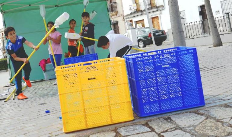 La diputada provincial María de los Ángeles Calvo; el alcalde de la localidad, Elías López, y la concejala de Deportes, Paqui Benítez, han participado durante la jornada en la entrega de diplomas a los mejores “deportistas” de la segunda edición de la Olimpiada del Reciclaje.