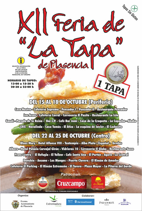 La XII Feria de la Tapa de Plasencia se celebra del 15 al 18 de octubre en la zona extramuros de la ciudad, y del 22 al 25 de octubre se ubicará en el casco histórico.