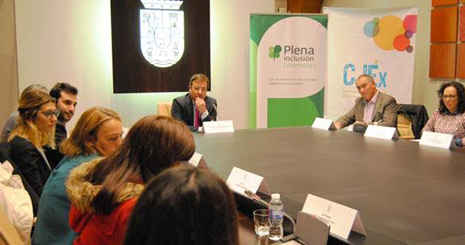 Estos jóvenes procedentes de las organizaciones  Plena inclusión Zafra, Plena inclusión Montijo, Plena inclusión Don Benito, Plena inclusión Villafranca, Inclusives, Aexpainba, Plena inclusión Mérida, se reunieron la mañana del miércoles 15 de noviembre con el presidente de la Junta de Extremadura, Guillermo Fernández Vara; con la consejera de Cultura e Igualdad, Leire Iglesias; el director del Instituto de la Juventud de Extremadura, Felipe González; la presidenta del Consejo de la Juventud, Elena Ruiz, y el presidente de Plena inclusión Extremadura, Pedro Calderón.