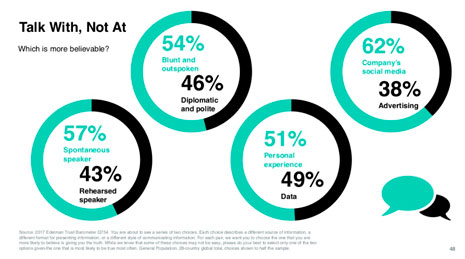 El informe termina con algunas claves que generan confianza: espontaneidad del mensaje de la empresa; que ese mensaje sea claro y contundente; que esté basado en la experiencia del comunicador; y la mayor credibilidad de las redes sociales frente a la publicidad tradicional.