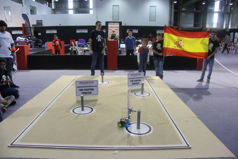 El desafío del apagafuegos se convirtió en uno de los atractivos para los visitantes en esta feria, convirtiéndose en uno de los que más afluencia de público atrajo en las finales del domingo. Los equipos participantes diseñaron, construyeron y programaron un robot que tenían localizar y extinguir cuatro velas colocadas en un campo con líneas negras que los robots utilizaban para ubicarse mediante sensores. Los competidores puntuaban según las velas que conseguían apagar.