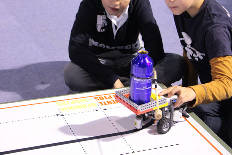 Un robot con una botella de metal ejerciendo de caballero de época y junto con una lanza pegado a la misma, debía golpear al robot oponente y hacer caer su botella. Los participantes en este desafío diseñaron, construyeron y programaron ese robot para disputar sobre una pista esa ‘lucha’ en tres divisiones distintas. El robot tenía que derribar en cinco intentos al oponente en una pista que contaba con un total de 91 centímetros dividido en tres tramos, valorados en 50, 100 y 150 puntos.