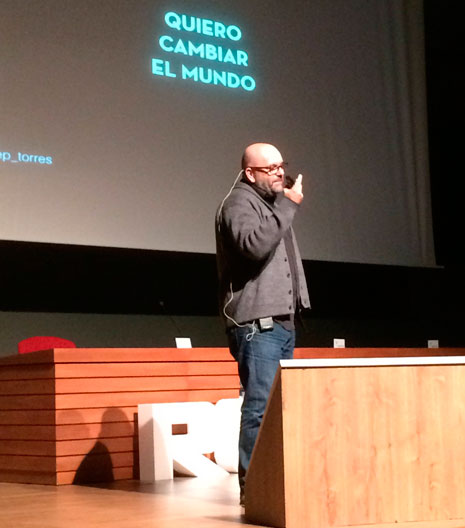 El creativo e inventor Pep Torres fue el encargado de concluir las ponencias de la sesión matutina, con su charla ‘La innovación no es para adultos’, en la que mostró las cuatro claves esenciales derivadas de la experiencia con el potencial creativo de los niños que participan cada año en el concurso de inventos del Museo de Ideas e Inventos de Barcelona; concluía su disertación con la frase “la innovación solo puede venir de aquellos que no tienen los pies sobre el suelo”.