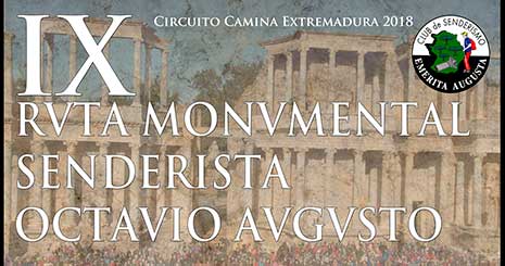 La IX edición de la Ruta Monumental Senderista Octavio Augusto que se celebrará el próximo domingo 28 de enero cuenta con 14.600 metros, comienza a las 9 de la mañana en el Albergue Municipal y, por la orilla del río llegarán al Puente Romano (donde se ofrecerá caldo a los participantes) y desde allí irán al Alcazaba, Templo de Diana, Foro Provincial, Teatro Romano, Anfiteatro, Circo Romano, Acueducto de San Lázaro (con avituallamiento) y, por el río Albarregas al Acueducto de los Milagros, y cruzar el Puente Lusitania para finalizar en el Palacio de Congresos desde donde los participantes se trasladarán en autobuses al Albergue para la celebración de una comida.