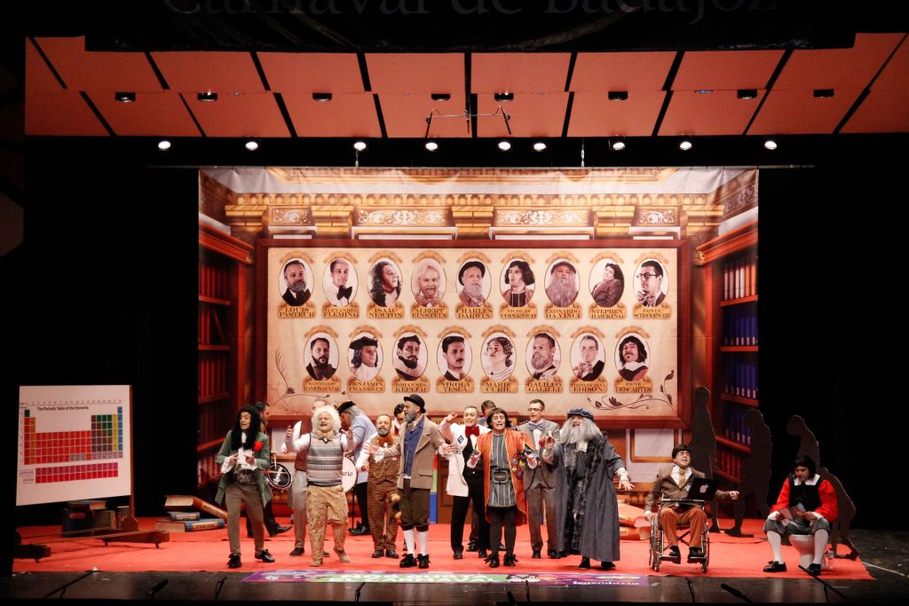 Y llegaba uno de los momentos más esperados de la noche. Momento de los vigentes campeones, Los Water Closet se reinventan y nunca mejor dicho… ¡Vaya genios!. Está Darwin, Copérnico, Einstein, Da Vinci… vaya plantel. Vuelven fuerte los Water, entre fórmulas e inventos se sacaron dos buenos pasodobles. El primero a su tipo del año pasado y el segundo, uno de los mejores hasta el momento, radiografiando la situación del Carnaval actual. Los cuplés, a su estilo, hablando de la facilidad actual para denunciar y de su hijo, amante de los instrumentos.