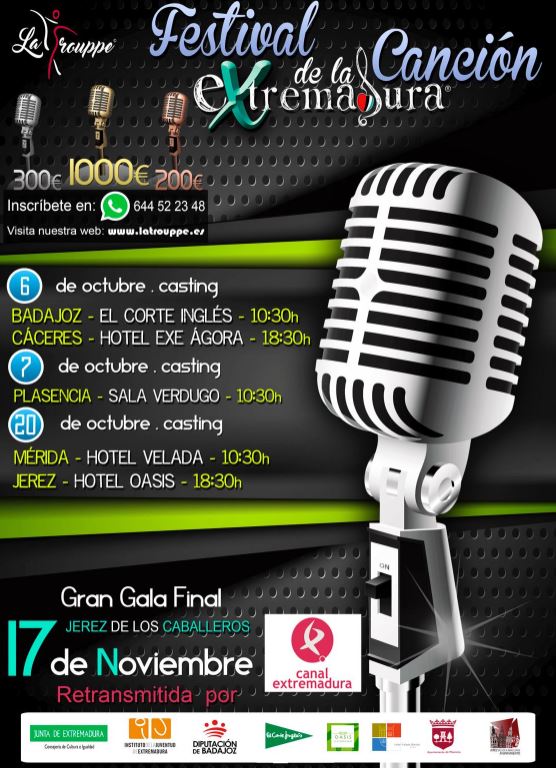 Sábado 6 de Octubre a las 18:30h en el hotel Ágora de Cáceres nos espera el casting para el Festival de la Canción de Extremadura organizado por “La Trouppe”.