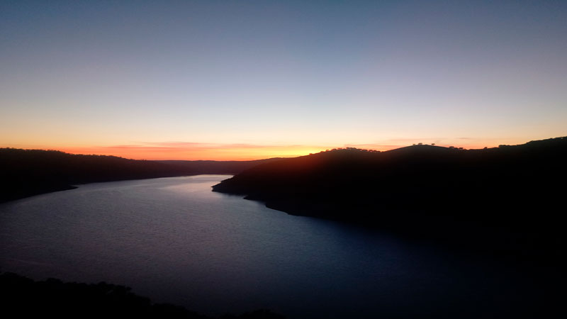 Llegamos al Salto del Gitano, donde los reflejos rojizos y anaranjados se difuminaban sobre el Tajo dando paso a un cielo estrellado en su máximo esplendor, proporcionándonos sin buscarlo un fin de ruta fantástico.