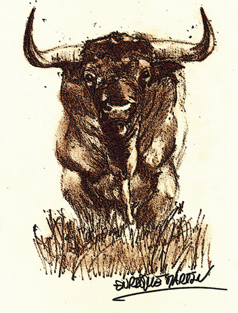 El primero se llamó ‘Iluminado’, herrado con el número 48 y negro de pelo. ‘Dispuesto’ fue el segundo, con el número 78 y negro zaíno de capa. ‘Mariposo’ pusieron por nombre al tercero, que tenía también pinta negra zaína y le habían marcado con el número 34 en la piel. En cuarto lugar saltó al ruedo ‘Informal’, número 73 y de manto (así decían los antiguos cronistas) negro bragado. El quinto fue ‘Guapo’, número 22 y de hábito negro zaíno. Y cerró la tarde ‘Gatuno’, número 22 y de sayo negro y bragado. En total tomaron 17 varas y derribaron dos veces. ‘Dispuesto’ se convirtió en el primer novillo al que arrastraron las mulillas, en vuelta clamorosa en la feria de San Isidro.