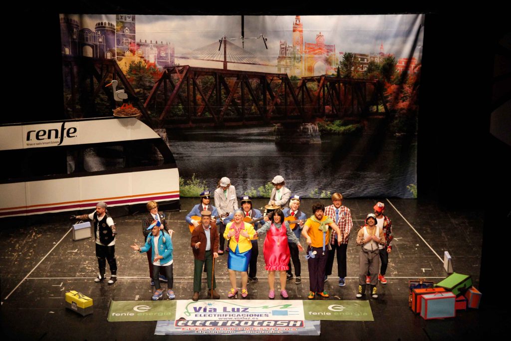 Los de Ribera del Fresno afrontan su tercera participación con una idea que todos esperábamos. Vienen de una avería de un tren extremeño con sus maquinistas y prometen no moverse de aquí. El escenario es un tanto pobre y el ir vestidos de formas distintas hace que la escenografía no sea su punto fuerte. Cantaron al apoyo entre las murgas y a los futbolistas que han tenido que pasar por los juzgados. Lo mejor de sus cuplés recordar el “tenemos que hundir Portugal” de la Caidita.